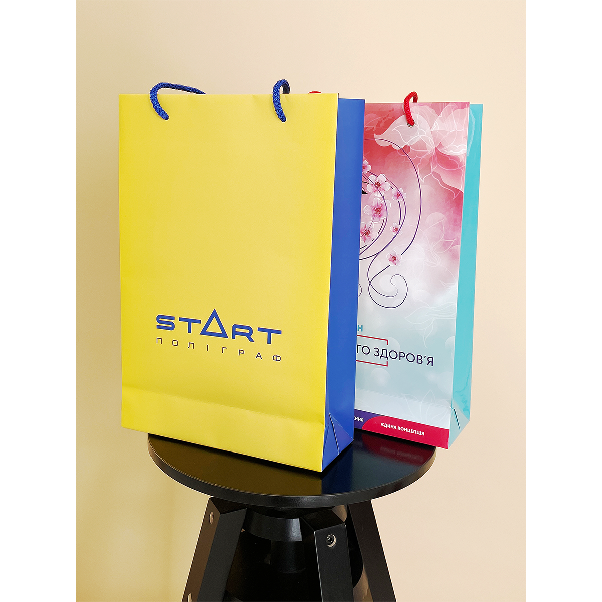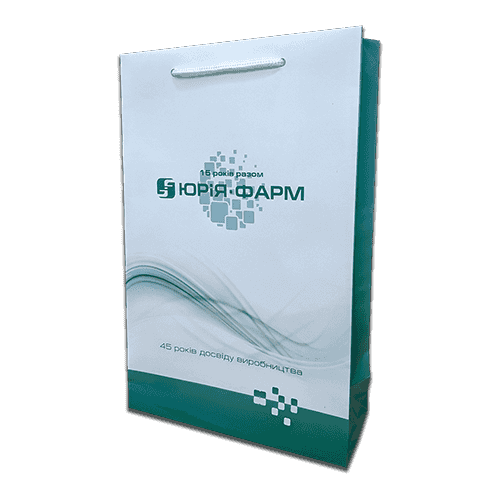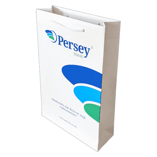 Паперовий пакет з крейдованого паперу, щільністю 170 г/м2, повнокольоровий друк + ламінація. Плетені ручки