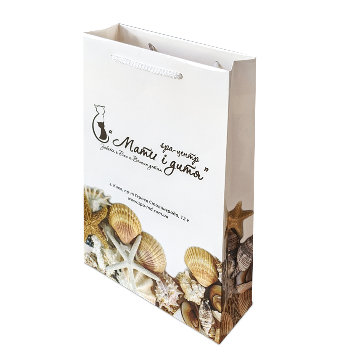 Паперовий пакет з крейдованого паперу, щільністю 170 г/м2, повнокольоровий друк + ламінація. Плетені ручки