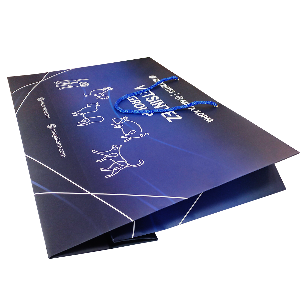 Паперовий пакет з крейдованого паперу, щільністю 170 г/м2, повнокольоровий друк + ламінація. Плетені ручки